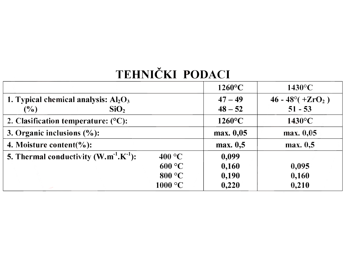 Keramička vuna je izvanredan visokotemperaturnootporni materijal – klasifikacioni temperaturni razredi su T=1260°C i T=1430°C.