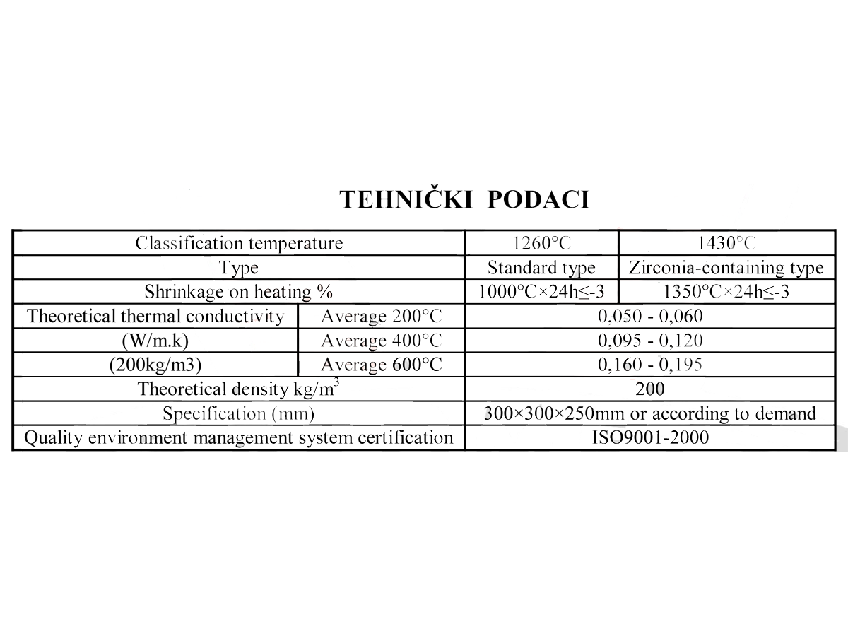 Modul iz keramičkih vlakana Modul iz keramičkih vlakana Tehnički podaci